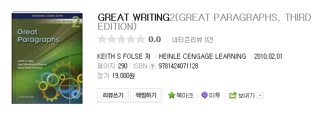 실용영어 great writing2 (great paragraphs)책 7000원에 팝니다 필기가 좀 되어있는 편이지만 더럽게 쓰지는 않았습니다. 쪽지주세요 오늘 내에 쪽지 확인하고 내일 바로 연락드리겠습니다^^